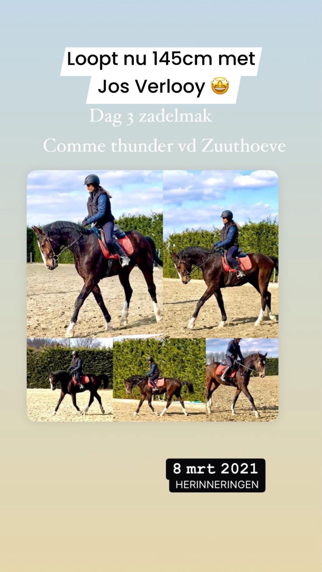 Sting werd door ons zadelmak gemaakt. Hij wordt nu succesvol uitgebracht in dressuursport.