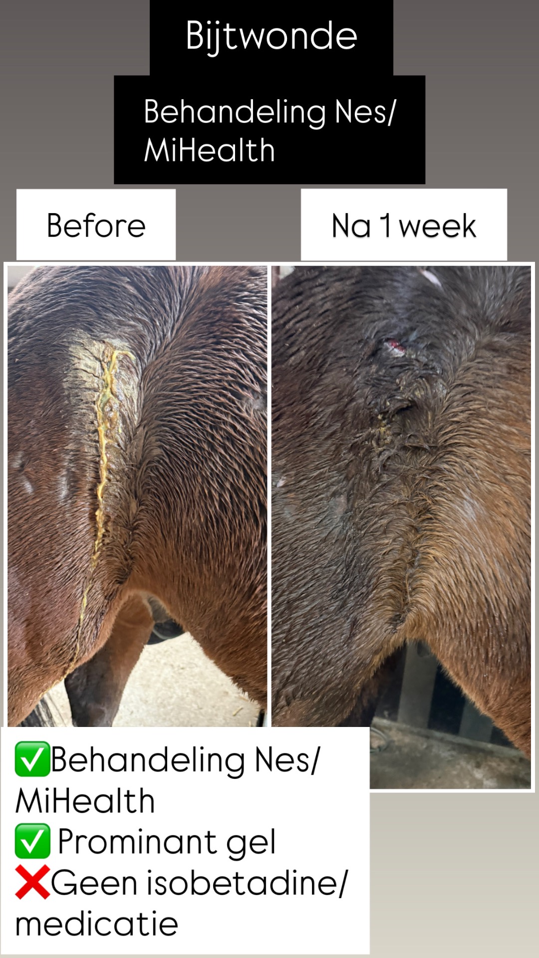 2 dagen behandeld met Mihealth en wonde is proper genezen. Ook de verdikking is zo goed als weg.