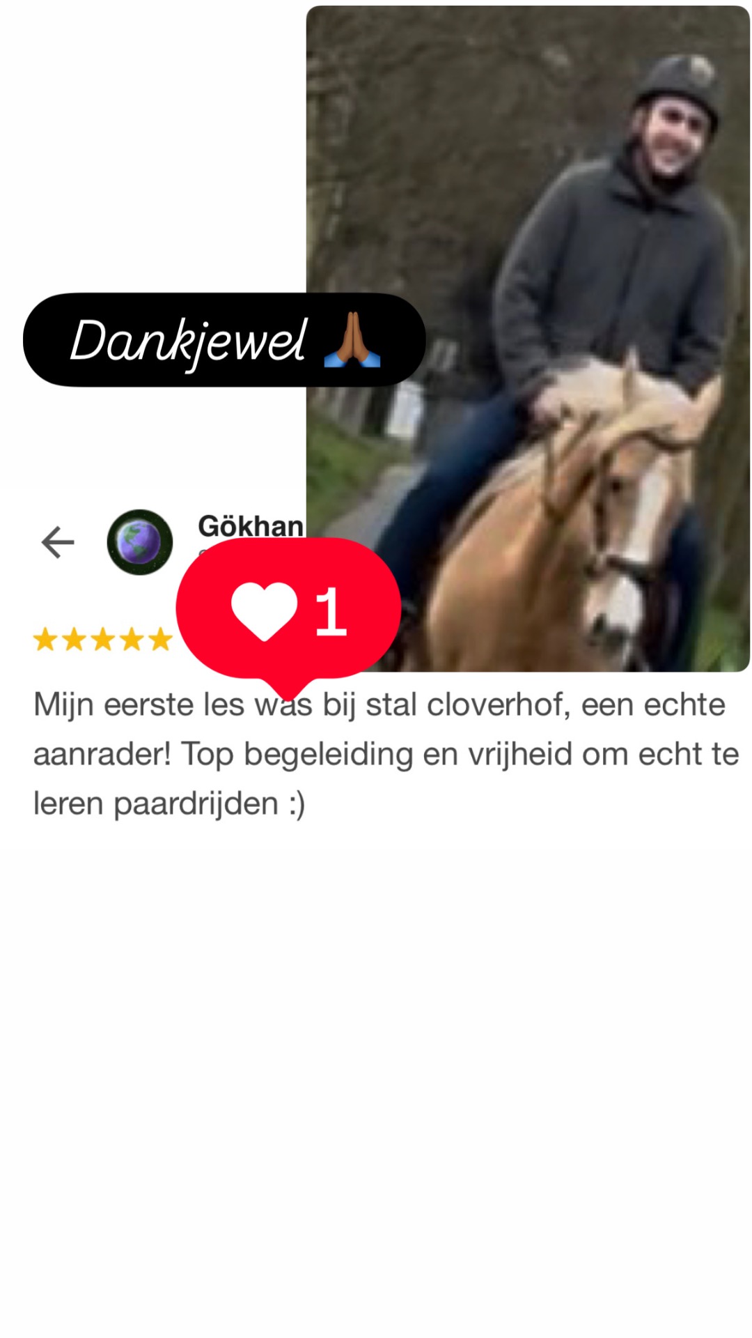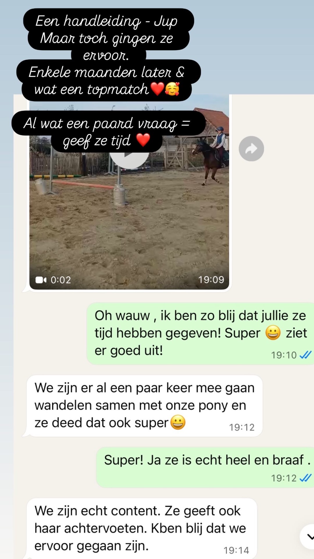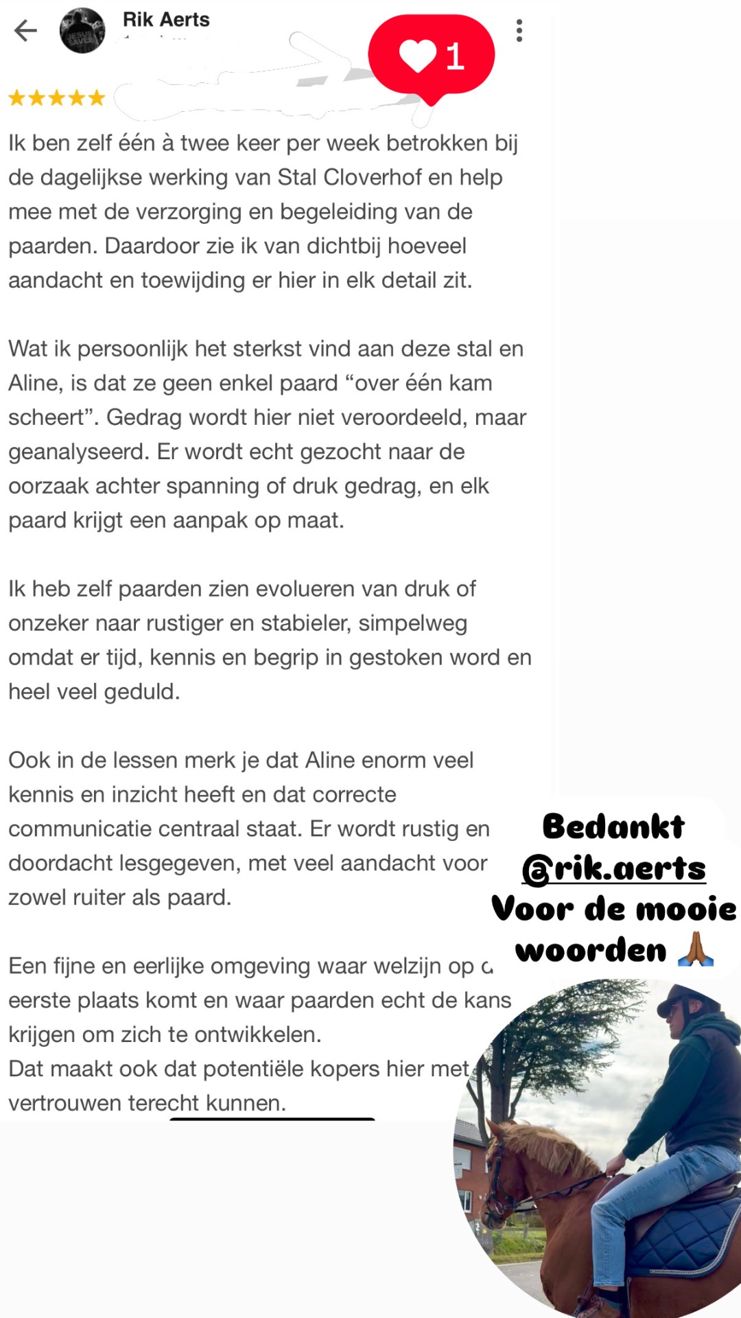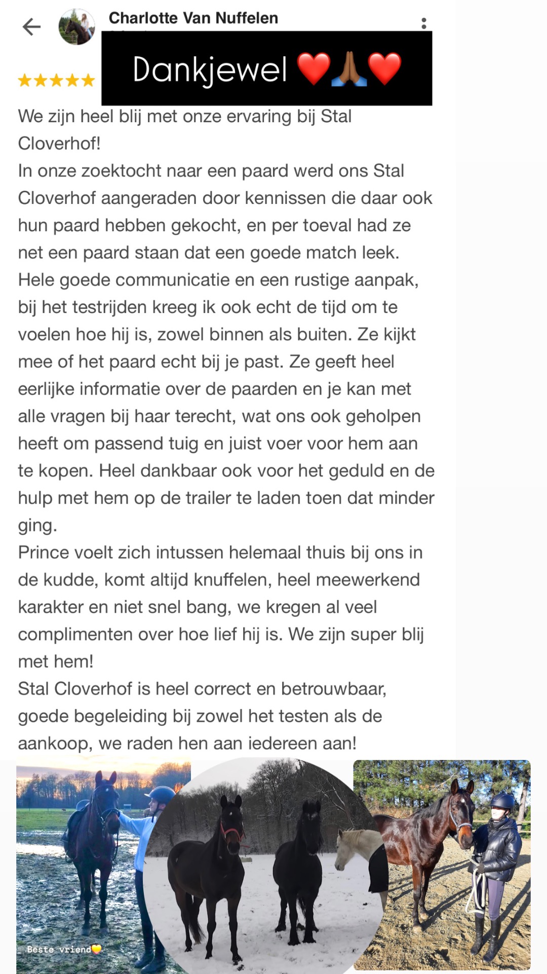 De lovende reviews over mijn werk met paarden geven me enorm veel voldoening. Ze laten zien hoe belangrijk het is wat ik doe, en daarom deel ik ze graag met jullie. Tevreden klanten betekenen gelukkige paarden – dat is waar ik het voor doe.