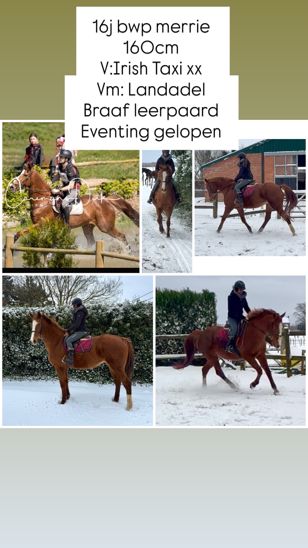 Deze knappe dame is rond 160cm een echt lief braaf tof leerpaard!