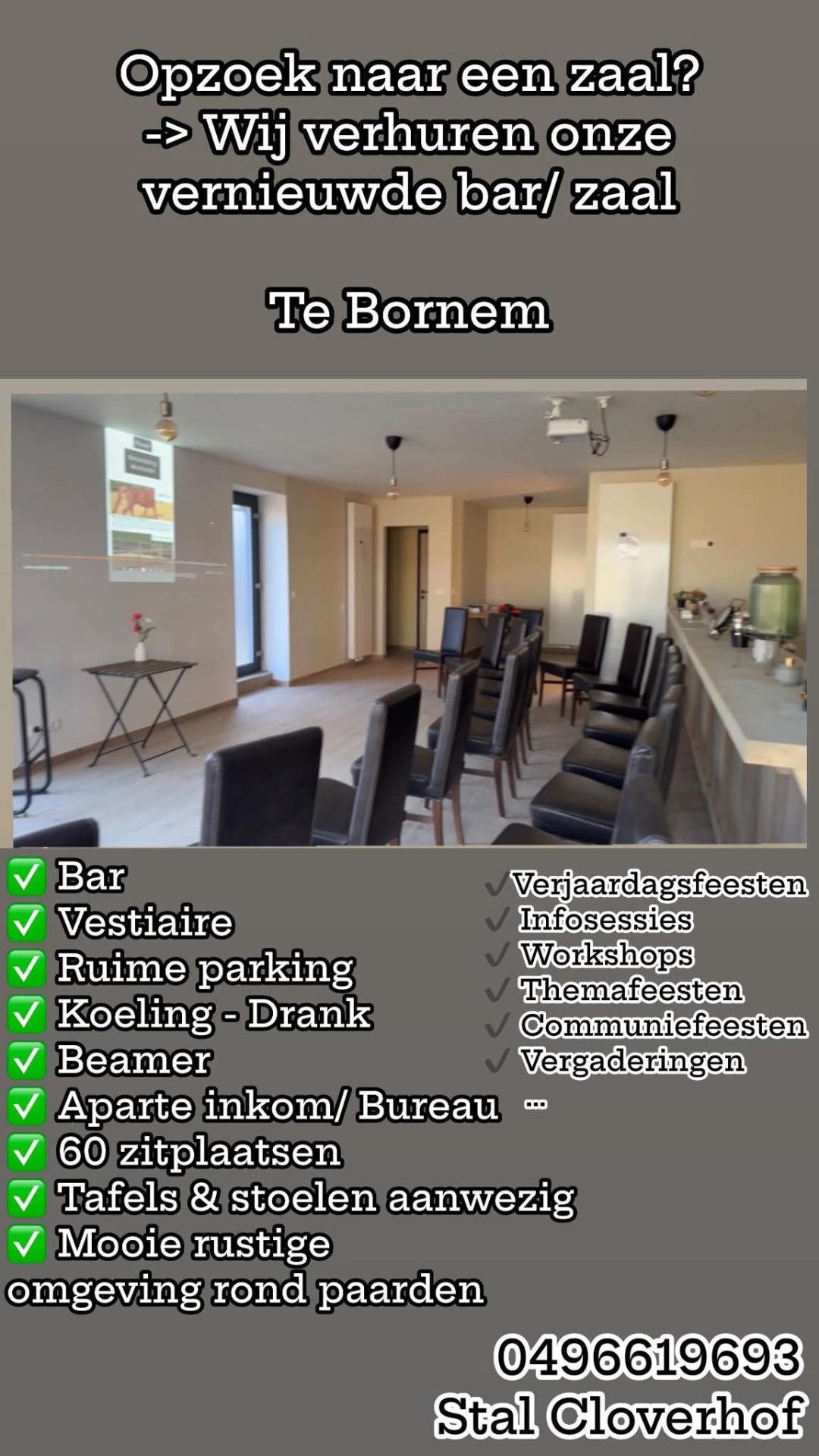 • Gebruik tafels & stoelen. max 40 personen